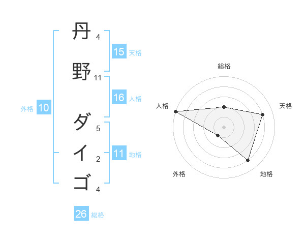 丹野 ダイゴさんの外格は10画の1点