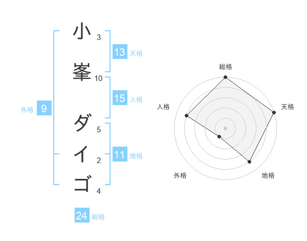 小峯 ダイゴさんを姓名の画数から五運を鑑定