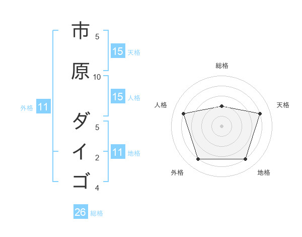 市原 ダイゴさんを姓名の画数から五運を鑑定