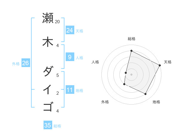 瀬木 ダイゴさんを姓名の画数から五運を鑑定