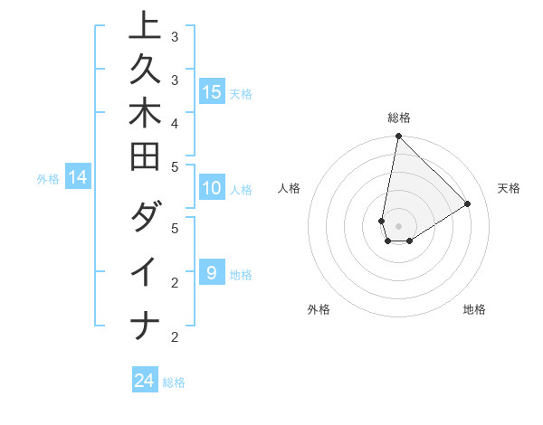 上久木田 ダイナさんを姓名の画数から五運を鑑定