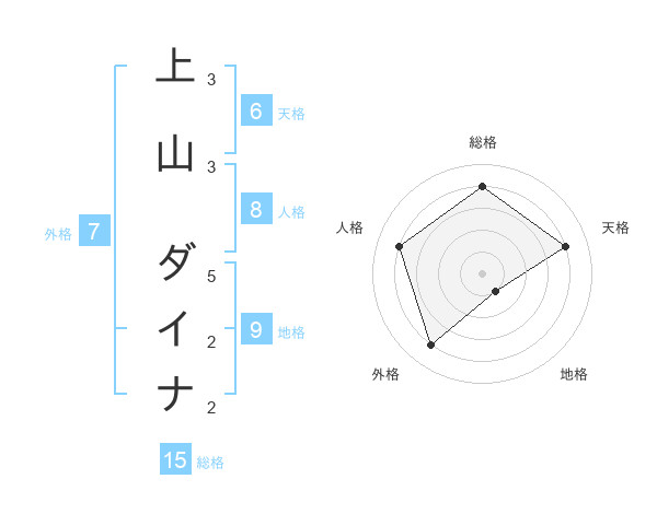 上山 ダイナさんを姓名の画数から五運を鑑定
