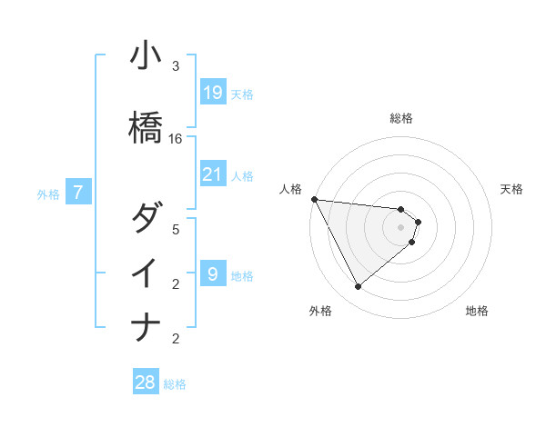 小橋 ダイナさんを姓名の画数から五運を鑑定
