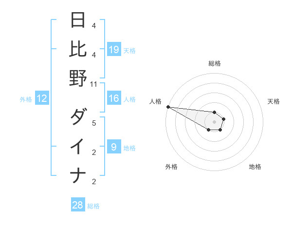 日比野 ダイナさんを姓名の画数から五運を鑑定