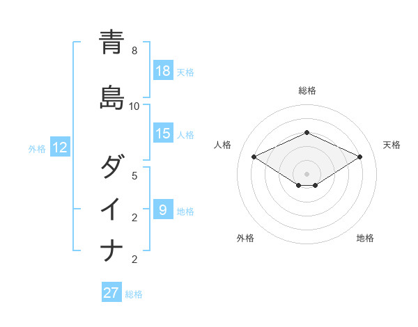 青島 ダイナさんを姓名の画数から五運を鑑定