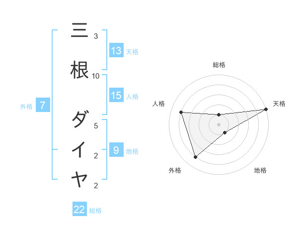 三根 ダイヤさんを姓名の画数から五運を鑑定