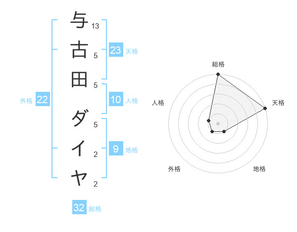 与古田 ダイヤさんの天格は23画の5点!
