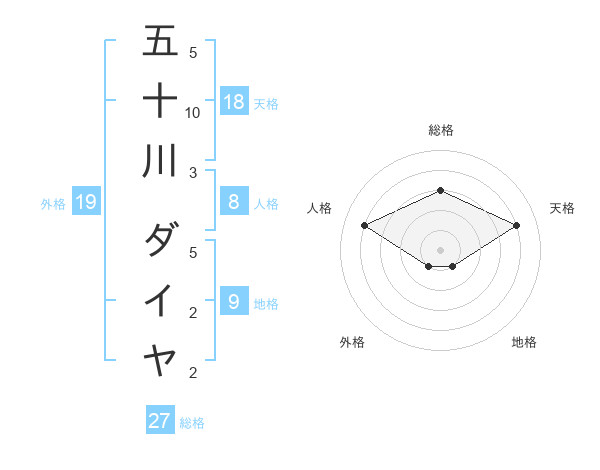 五十川 ダイヤさんの総格は27画の3点