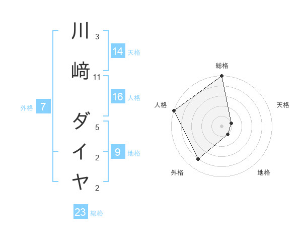 川﨑 ダイヤさんを姓名の画数から五運を鑑定