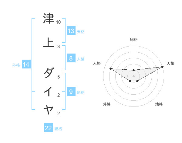 津上 ダイヤさんの総格は22画の1点