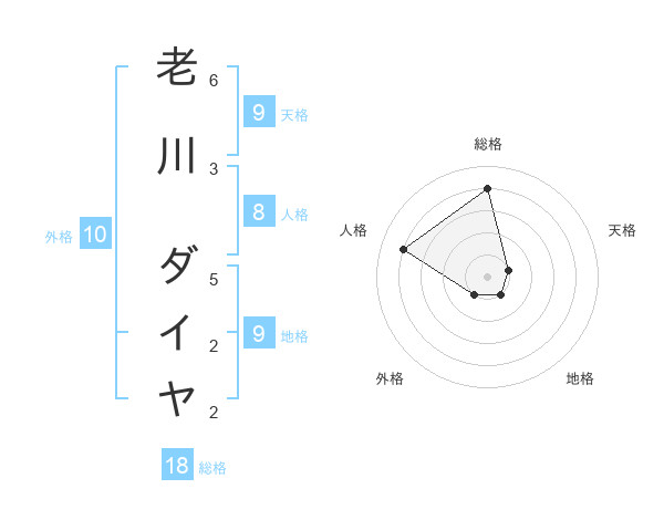 老川 ダイヤさんの天格は9画の1点!