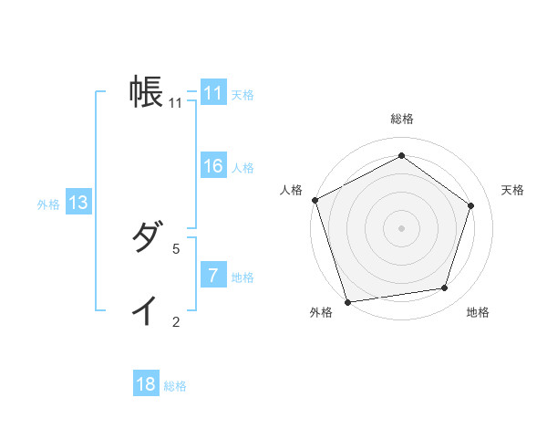 帳 ダイさんの総格は18画の4点!