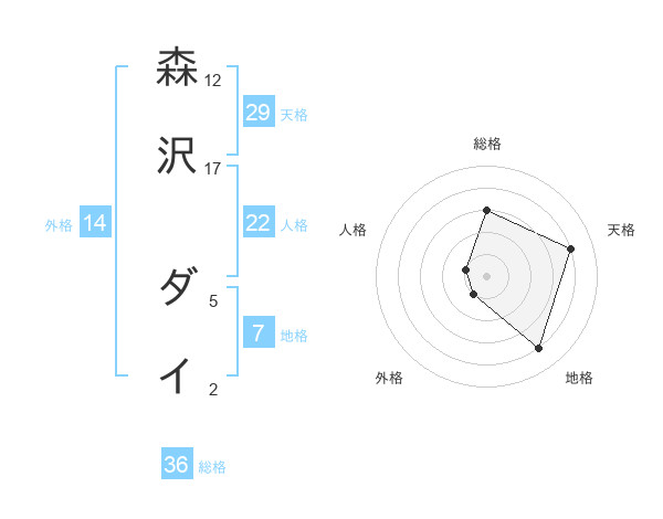 森沢 ダイさんを姓名の画数から五運を鑑定