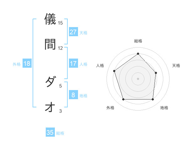儀間 ダオさんの総格は35画の4点!