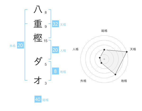 八重樫 ダオさんを姓名の画数から五運を鑑定