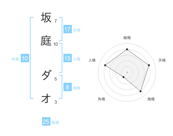 坂庭 ダオさんの天格は17画の4点!