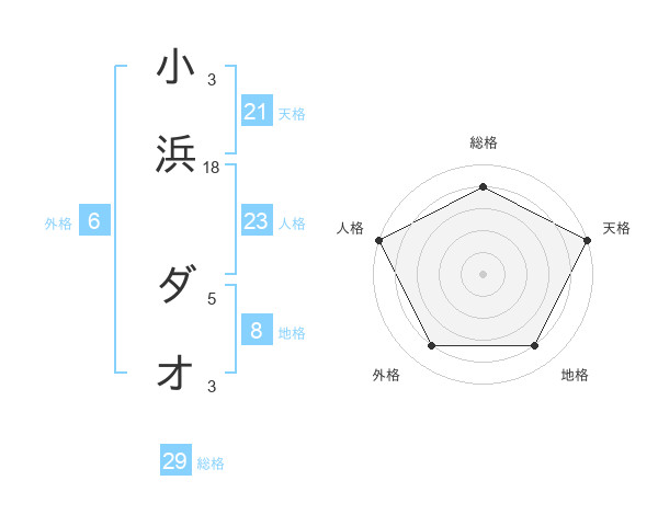 小浜 ダオさんの総格は29画の4点!