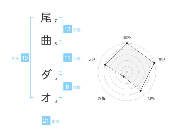 尾曲 ダオさんの総格は21画の5点!