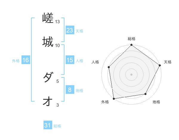 嵯城 ダオさんの総格は31画の5点!