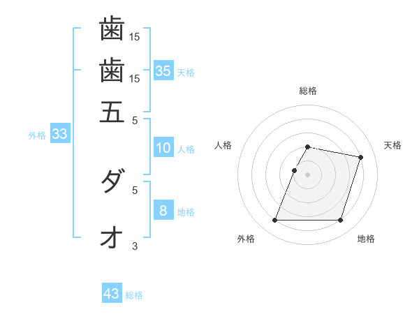 歯歯五 ダオさんの外格は33画の4点!