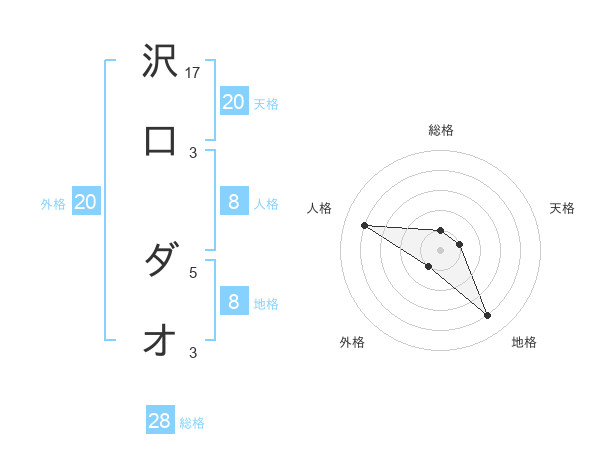 沢口 ダオさんを姓名の画数から五運を鑑定