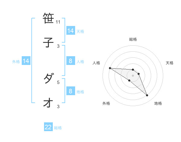 笹子 ダオさんの外格は14画の1点!