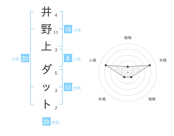 井野上 ダットさんを姓名の画数から五運を鑑定