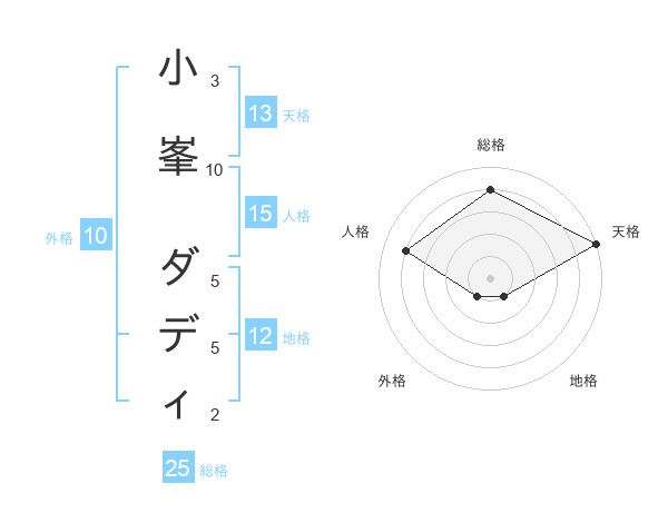 小峯 ダディさんを姓名の画数から五運を鑑定