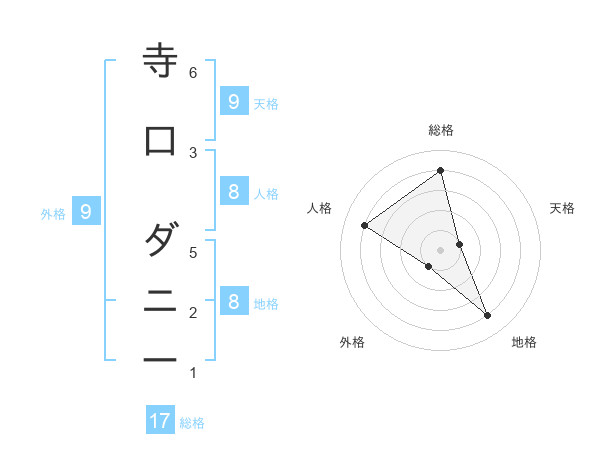寺口 ダニーさんを姓名の画数から五運を鑑定