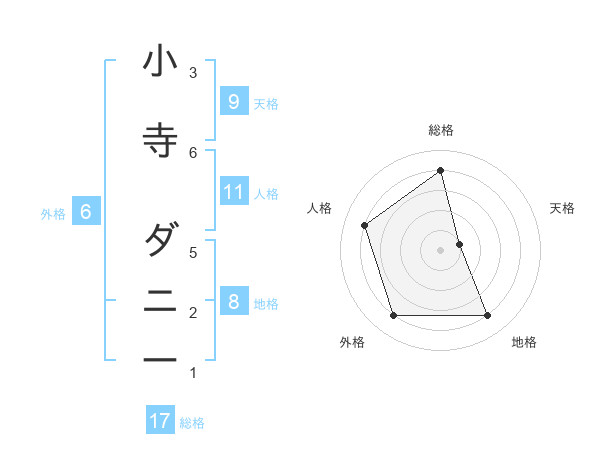 小寺 ダニーさんを姓名の画数から五運を鑑定