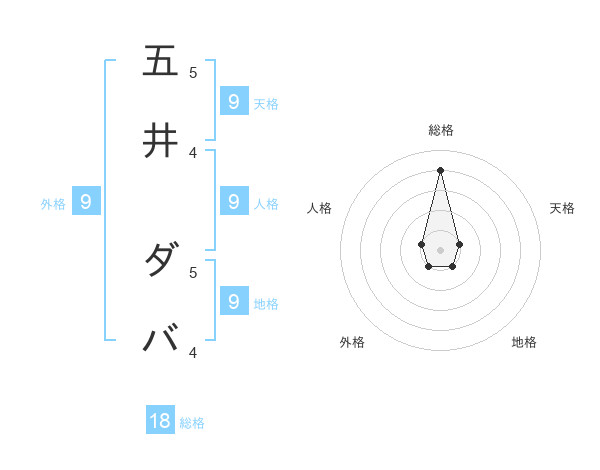 五井 ダバさんの天格は9画の1点!
