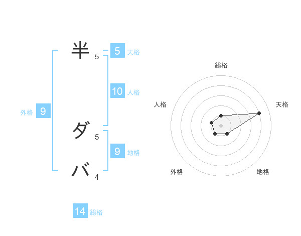 半 ダバさんの総格は14画の1点!