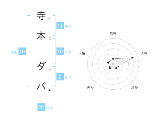 寺本 ダバさんを姓名の画数から五運を鑑定