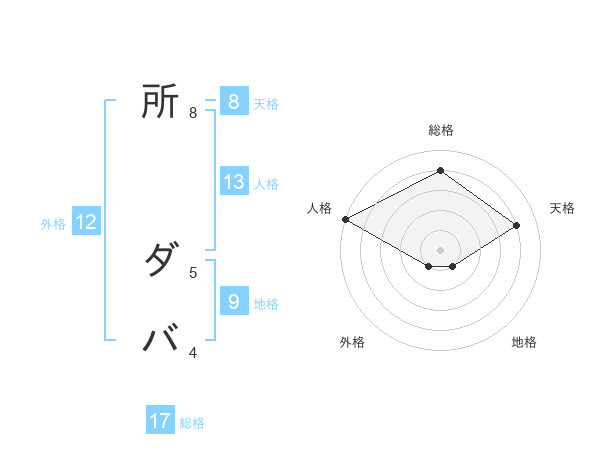 所 ダバさんの総格は17画の4点!