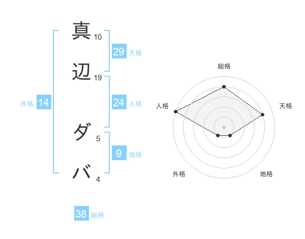 真辺 ダバさんを姓名の画数から五運を鑑定