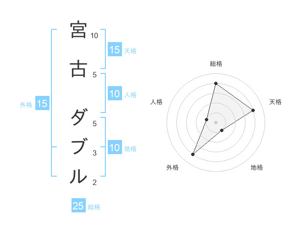 宮古 ダブルさんの天格は15画の4点!