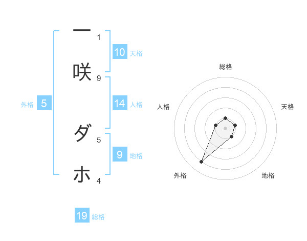 一咲 ダホさんの外格は5画の4点!