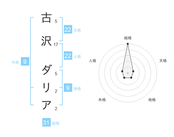 古沢 ダリアさんを姓名の画数から五運を鑑定