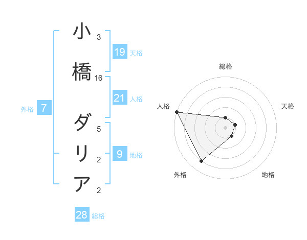 小橋 ダリアさんを姓名の画数から五運を鑑定