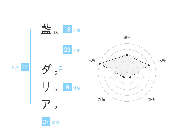 藍 ダリアさんを姓名の画数から五運を鑑定
