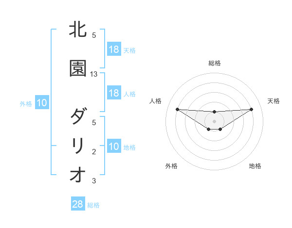 北園 ダリオさんの天格は18画の4点!