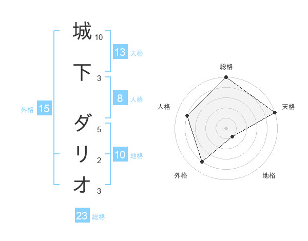 城下 ダリオさんを姓名の画数から五運を鑑定