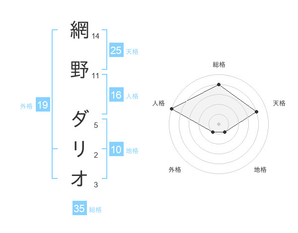 網野 ダリオさんを姓名の画数から五運を鑑定