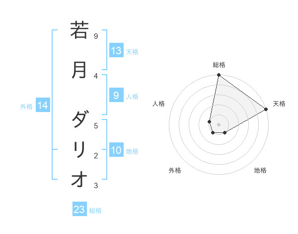 若月 ダリオさんを姓名の画数から五運を鑑定