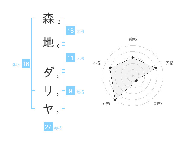 森地 ダリヤさんの総格は27画の3点!