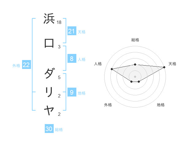 浜口 ダリヤさんの総格は30画の2点!