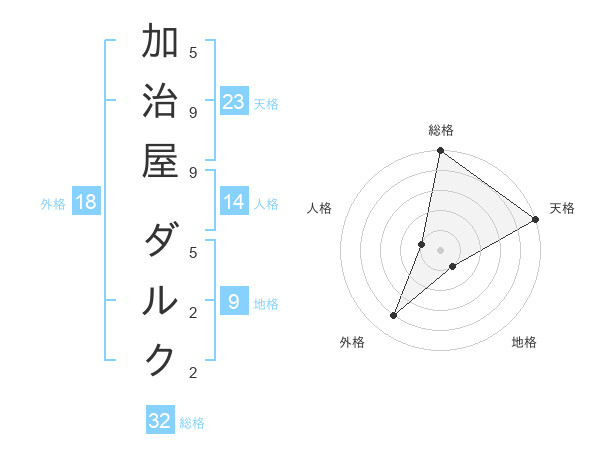 加治屋 ダルクさんの天格は23画の5点!