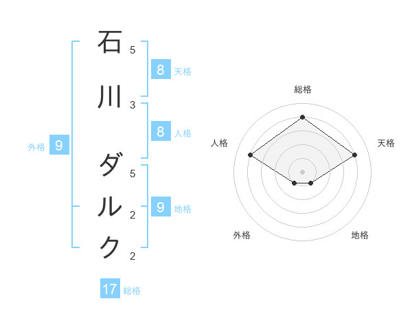石川 ダルクさんを姓名の画数から五運を鑑定