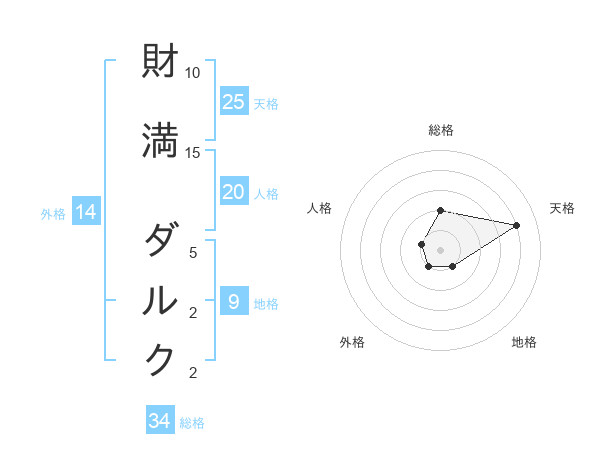 財満 ダルクさんの天格は25画の4点!