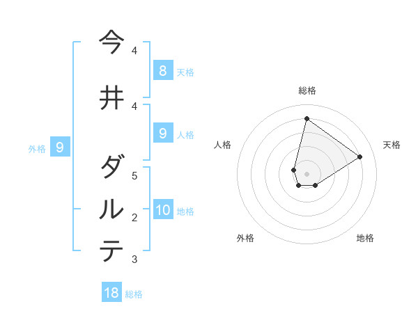 今井 ダルテさんを姓名の画数から五運を鑑定